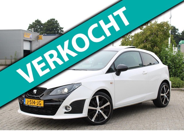 Keurige Seat Ibiza 1.4 TSI 180 PK DSG Bocanegra uitvoering. Voorzien van diverse opties als Stoelverwarming Schuifdak Lichtmetalen Velgen Xenon Verlichting Parkeersensoren Cruise Controle