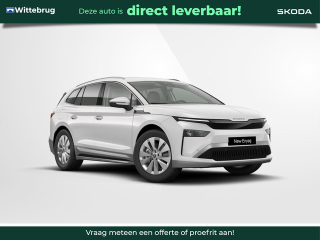 ŠKODA heeft de auto opnieuw uitgevonden. De volledig elektrische ŠKODA Enyaq is duurzaam, maar biedt tegelijk veel rijcomfort en geweldige prestaties. Eindelijk elektrisch rijden? Deze auto is voorzien van een elektromotor. Dus stil, schoon én snel! Deze gloednieuwe auto is per direct uit onze voorraad leverbaar. Een krachtige motor geeft deze auto zijn sportieve prestaties. Regen, wind, hagel, sneeuw? Als het buiten guur is, doet de stoelverwarming z'n weldadige werk! Bij de uitrusting van deze auto horen onder meer 19 inch lichtmetalen velgen, LED koplampen, aluminium dakrailing, elektrisch inklapbare buitenspiegels, in delen neerklapbare achterbank en LED-achterlichten.