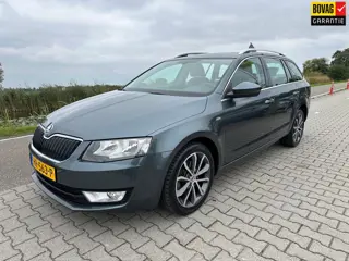 Skoda Octavia voorzien van een trekhaak, cruisecontrol, parkeersensoren, navigatie met bluetooth, stoelverwarming en lichtmetalen...