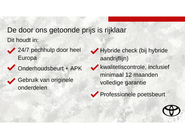 Inbegrepen afleverpakket: Kormelink Pakket: De auto word voor aflevering voorzien van een onderhoudsbeurt, volledig gepoetst, Toyota pechhulp, nieuwe APK en volledige garantie.