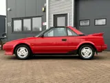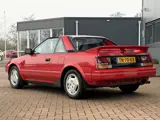 Genieten van dit prachtige icoon, een uniek mooie Toyota MR2 van 1987 (AW11, eerste generatie) met 243.958km. Deze MR2 is in het verleden zorgvuldig en uitsluitend met originele onderdelen gerestaureerd door Toyota specialist Vetos. Alleen de leidingen van de koelvloeistof (van voor naar achter ivm middenmotor concept) zijn verbeterd en volledig nagemaakt van roestvrijstaal zodat dit in de toekomst geen problemen meet zal opleveren. De rode 2K lak is ook voorzien van een blanke laklaag en daardoor zal deze in de toekomst niet vaal / dof worden. Deze lak verkeert werkelijk nog in geweldige staat net als de rest van de auto. De onderkant is volledig behandeld na restauratie tegen roest en sinds de restauratie is de MR2 uitsluitend als 'mooi-weer auto' ingezet. De algehele toestand is dan ook zonder twijfel schitterend te noemen. Maar ook het rijden in deze MR2 is een geweldige ervaring, hij voelt perfect aan, geen enkel gerammel of gevoel van slijtage. De Toyota MR2 is dan ook een heerlijke rijmachine, met slechts 1034kg en 124pk, achterwielaandrijving en de middenmotor bracht deze auto in de jaren '80 een rijgedrag die dat van zeer dure sportauto's nabootst. Vanaf 1986 was er ook de keuze voor een T-Top dak, de 2 dakpanelen zijn hiermee uitneembaar waardoor de auto transformeert tot een semi-cabrio. Daarnaast waren er enkele uiterlijke aanpassingen vanaf dat moment waaronder de toevoeging van kleine sideskirts en de doorzichtige achterspoiler aan het dak. Dit betreft zo'n MR2 T-Top waardoor de rijbeleving zowaar nog leuker wordt, de originele hoes om de dakpanelen in te bewaren / vervoeren is aanwezig. Tijdens de ontwikkeling werd samengewerkt met Lotus wat merkbaar is aan die heerlijke rij eigenschappen. Kortom een uniek stukje auto geschiedenis in fantastische staat. Misschien wel beter dan nieuw en zonder twijfel een zeldzame kans om één van de mooiste exemplaren te bemachtigen die Europees verkrijgbaar zal komen. Rijplezier in zijn puurste vorm.