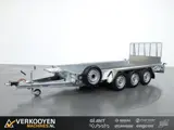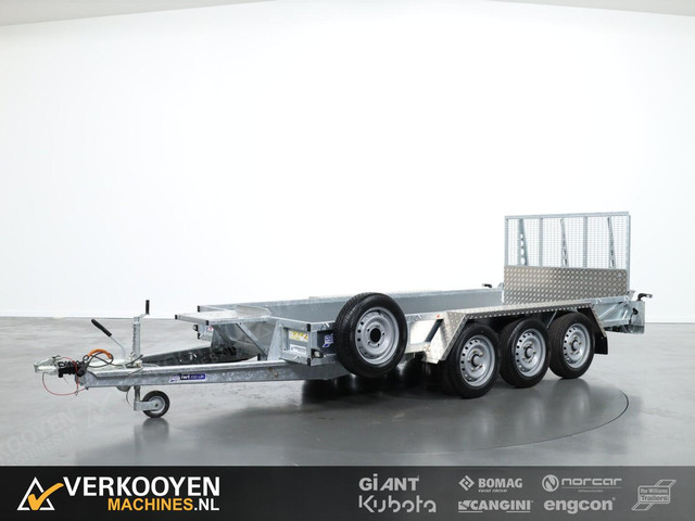 Ifor Williams GP146-3 tridem machinetransporter. De Ifor Williams GP-serie, is gekend als de sterkste dieplader in zijn domein en heeft een open rechthoekig stalen framewerk, geïntegreerd in het chassis. Het MTM van deze trailer is 3500kg. De GP-serie is uitgerust met een stevige multiplex vloer met een fenolharslaag. Deze standaarduitrusting zorgt voor een goede ondersteuning tijdens het laden zonder steunpoten te moeten uitzetten. Deze aanhanger is voorzien van; - Oprijklep 120cm - Extra zware 16" wielen - Gesloten zijkanten Standaard voorzien van; - Aluminium tranenplaat spatborden. - Reservewiel! Gemonteerd aan de zijkant. - Zeer sterk/verzwaard graafbakplateau, met vastzetpunten. - Zwaar geribbeld neuswiel. - Vastzetpunten buitenom. - Vastzetpunten aan de binnenkant van de laadbak t.b.v. vastzetten machine. - Contourverlichting rood/wit achterop. - Gegoten koppeling met ingebouwd antidiefstalslot.