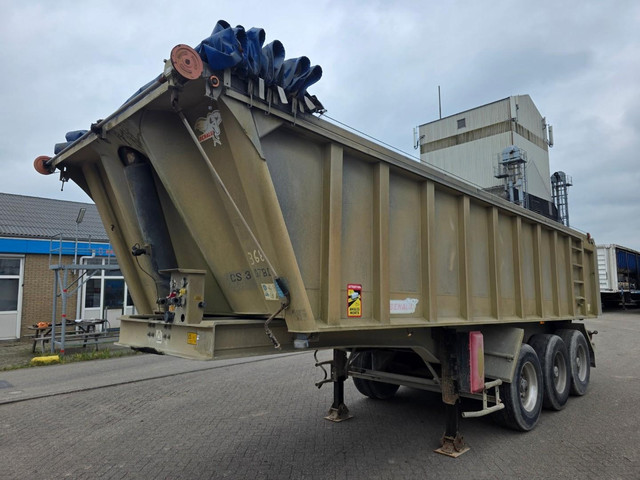 Benalu kipper oplegger, uitgevoerd met 3 assen, trommelremmen en luchtvering.