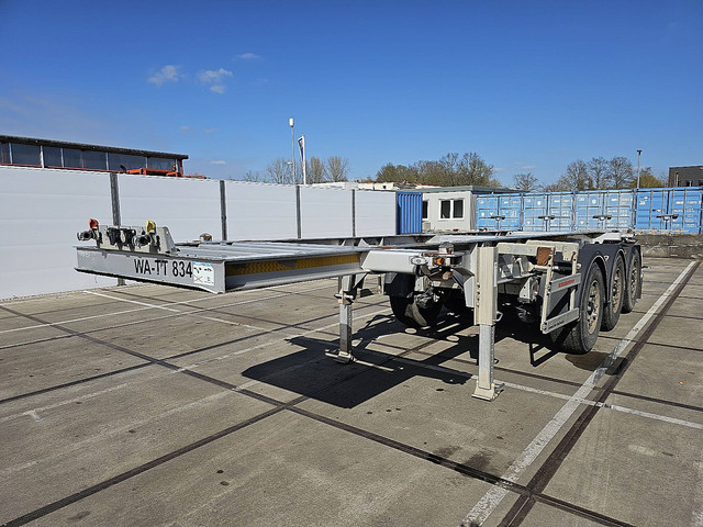 Aantal Assen: 3, Eigen gewicht: 3250 kg, Totaalgewicht: 39000 kg, Soort chassis: Volledig chassis, Kingpin afmeting: 2 inch, Vering type: vollucht, Kleur: Grijs, ABS (Anti Blokkeer Systeem), EBS, Bouwjaar opbouw: 2019, Twistlocks: 1x20 tankcontainer, Maten container: 1x 20 FT, Merk as: BPW