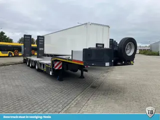 3-assige uitschuifbare semi-dieplader, naloop gestuurd met wielkuipen en gieksleuf.