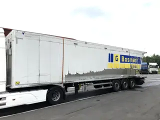 Oplegger heeft schade aan de gehele linkerzijkant.