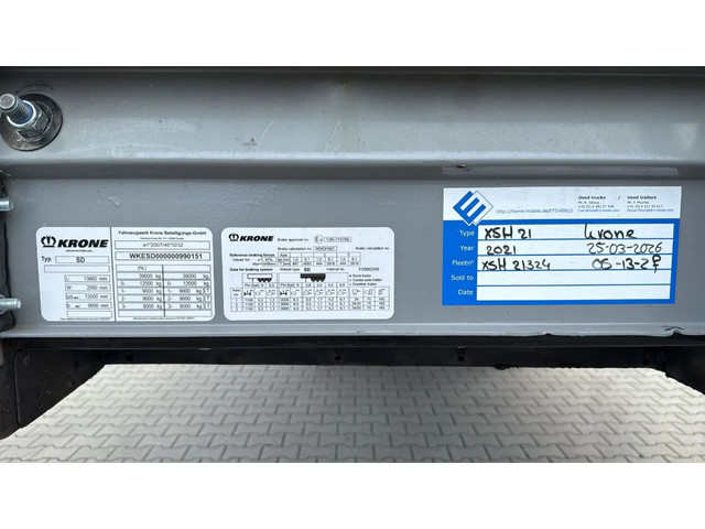 2021 Krone mega P400 huckepack vol kopschot flat met 2 rij hoogtes (95cm mega & 1,2m standaard), EBS, locking rail, BPW trommel remmen 435/50R19,5 super single banden OS-13-ZF: 7-7-11-10-7-6mm APK tot 25-03-2026 km stand 115000KM lichte schade aan rechter kant balk voor