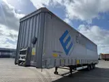 50x 2015 Krone XL P400 mega huckepack schuifzeil trailer (voorzien van verticale alu latten) voorzien van lift dak / schuifdak,, achtersteunpoten, 16 vaste spanbanden, locking rail L + R in kantprofiel, 2 rijhoogtes (0,95m continental & 1,2m UK), BPW trommelremmen met 435/50R19,5 super single banden (gemiddeld 50% waarvan de middenas gesneden), EBS, alle mogelijke lading certificaten, ferry en huckepack specificatie / uitvoering, vraagprijs euro 4950,- ex BTW .... ON-34-SJ banden 7-7-7g-7g-5-6mm 473559km APK 06-02-2027 / ON-46-RB banden 8-6-6g-6g-9-11mm 709913km APK word nieuw gekeurd