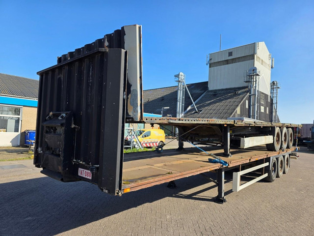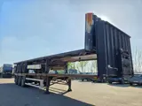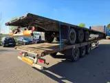 Deze set Krone 3-assige platte opleggers uit 2002 wordt gebruikt voor dagelijks transport van zware en grote ladingen.