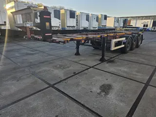 Aantal Assen: 3, Eigen gewicht: 4300 kg, Totaalgewicht: 38000 kg, Soort chassis: Volledig chassis, Materiaal chassis: staal, Kingpin afmeting: 2 inch, Vering type: vollucht, ABS (Anti Blokkeer Systeem), EBS, Bouwjaar opbouw: 1998, Maten container: 1x20 / 1x30ft, Merk as: BPW