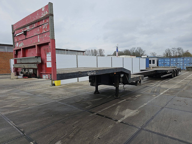 Aantal Assen: 3, Dubbele banden, Laadvermogen: 33700 kg, Eigen gewicht: 11300 kg, Totaalgewicht: 45000 kg, Soort chassis: Volledig chassis, Materiaal chassis: staal, Kingpin afmeting: 2 inch, Vering type: vollucht, ABS (Anti Blokkeer Systeem), EBS, Bouwjaar opbouw: 2006, Soort dieplader: semi-dieplader, Laadbed lengte: 800 cm, Zwanehals lengte: 390 cm, Uitschuifbare chassis: midden, Lengte uitschuifbaar: 580, Merk as: SAF