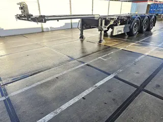 Aantal Assen: 3, Soort chassis: Volledig chassis, Materiaal chassis: staal, Kingpin afmeting: 2 inch, Vering type: vollucht, ABS (Anti Blokkeer Systeem), EBS, Bouwjaar opbouw: 2019, Twistlocks: 2x20 + 1x30 + 1x40 + 1x45 high cube, Uitschuifbare chassis: midden / achter, Merk as: OTHER