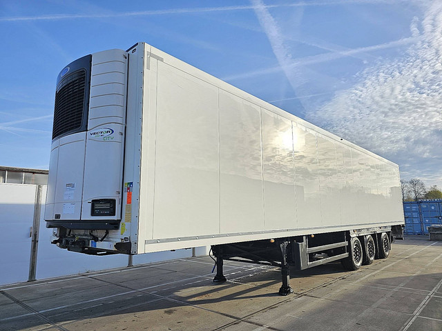 Aantal Assen: 3, Soort chassis: Niet volledig chassis, Materiaal chassis: staal, Kingpin afmeting: 2 inch, Vering type: luchtvering, ABS (Anti Blokkeer Systeem), EBS, Bouwjaar opbouw: 2016, Merk koelmotor: Carrier, Type koelmotor: Vector1950, Koelmotor: diesel/elektrisch, Draaiuren elektrisch: 1 uur, Draaiuren diesel: 331 uur, Wanddikte: 45 mm, Soort koeling: Koelen, Extra verdamper, Merk as: SCHMITZ, Laadklep, Soort laadklep: achtersluit klep, Capaciteit laadklep: 1500 kg, Merk laadklep: Dhollandia, Materiaal laadklep: staal, Plateau grootte: 200x254, Laadklep accu