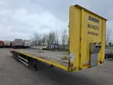 Trailor platte oplegger uit 2008, uitgevoerd met 3 assen, Gigant assen, schijfremmen en luchtvering.