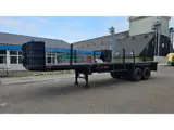De trailer heeft stalen bladvering en BPW assen met trommelremmen. De brede asopstelling zorgt voor stabiliteit op de weg.