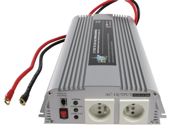 Deze omvormer zet 12 volt (DC) (ook leverbaar in 24V) spanning van een accu van uw auto of vrachtwagen om naar 220 Volt (AC) spanning .