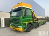 2012 DAF CF85.410 8x2 Twin-Steer Sleeper Flatbed Truck with Crane