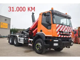 enkel 31.900 km !!! – Zoals nieuw !!! – HMF kraan 1730/ 4K – Radio gestuurd – Rotor met grijpfunctie – WAF 20 Ton Systeem – Naafreductie – Airco – Camera – Weegsysteem – totaal 26.000 kg – Tarra 13570 kg – wielbasis 3825 –