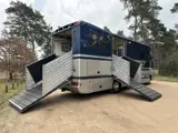 In bijna nieuwstaat verkerende Ketterer paardenvrachtwagen met uiterst luxe en complete living. Geschikt voor 4-paarden en voorzien van elektrische lier t.b.v. concourskast. Echte Duitse kwaliteitsbouw door Ketterer wat aan alle details en afwerking terug te vinden is. Zeer handzame vrachtwagen met ideale indeling, automaat en airco. Living voorzien van slaapplaatsen, douche/toilet ruimte, warm water boiler, grote doorbraak van de cabine naar de living en toegang vanaf de living naar paardengedeelte. Voorzien van 4-paards inrichting met hengstenschotten en zij + achterlader, groot zadelluik. Ideale auto voor zowel meerdaagse concoursen als grote dag concoursen. Zowel van binnen als van buiten in zeer nette staat.