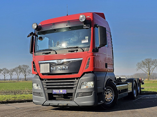 Aantal Assen: 3, Configuratie: 6x2, Eigen gewicht: 10775 kg, Totaalgewicht: 28000 kg, Diesel inhoud totaal: 600 liter, Aanhangwagen kopp., Dikte koppelingspen: Special, Aantal sperren: 1, Vering type: vollucht, Soort cabine: Hoge cabine, Cruise control, Tachograaf, Digitale tachograaf, Airconditioning, Standkachel, Kleur: Rood, Motor merk: M.A.N., Motorvermogen: 375 Kw (503 Hp), Euro: 6, Soort versnellingsbak: AS-tronic, Versnellingen: 12, Extra remsysteem, Merk retarder: Intarder, Stuurbekrachtiging, ABS (Anti Blokkeer Systeem), ASR (Anti Slip Regeling), Materiaal opbouw: staal, Twistlocks: 1x20, Lengte systeem: 98 cm, Laadklep, Soort laadklep: onderschuif klep, Capaciteit laadklep: 2000 kg, Merk laadklep: Zepro, Materiaal laadklep: aluminium, Plateau grootte: 155 x 245