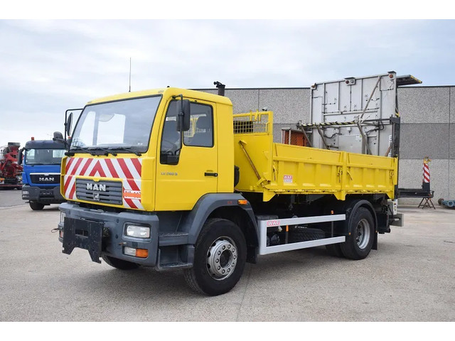 2dehands Vrachtwagen met Botsabsorbeerder – Man L280 B – 51.000 KM – – Kipper +- 4.50 m – 3 zitplaatsen – bladgeveerd- Handgeschakeld- totaal 18.600 kg – Tarra 9840 –