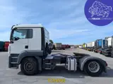 Achteras: Bandenmaat: 315/80 R22.5; Dubbellucht; Bandenprofiel linksbinnen: 12 mm; Bandenprofiel linksbuiten: 6 mm; Bandenprofiel rechtsbinnen: 9 mm; Bandenprofiel rechtsbuiten: 9 mm; Vering: luchtvering