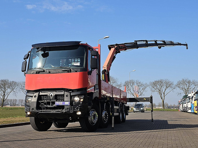 Aantal Assen: 4, Configuratie: 8x4, Eigen gewicht: 17585 kg, Totaalgewicht: 37000 kg, Diesel inhoud totaal: 350 liter, Aantal sperren: 2, Vering type: bladvering, Soort cabine: Korte cabine, Cruise control, Tachograaf, Digitale tachograaf, Airconditioning, Kleur: Rood, Motor merk: Renault, Motorvermogen: 323 Kw (433 Hp), Euro: 6, Soort versnellingsbak: Optidriver, Versnellingen: 12, Stuurbekrachtiging, ABS (Anti Blokkeer Systeem), ASR (Anti Slip Regeling), PTO, PTO soort: 1, Pomp, Kraan, Kraan merk: PALFINGER 27001 EH, Bouwjaar kraan: 2017, Capaciteit kraan: 27, Max. belasting: 830 Kg bij 18,7 M, Aantal steunpoten: 4, CE goedgekeurd, Positie bediening: zijbediening rechts, Afstandsbediening, Positie kraan: achterop het chassis, Hydr. uitschuifbaar: 7 keer, Extra hydr. Aansl.: 2, Rotator, Pallethaak, Lasthaak, Stenenklem, PALFINGER PK 27000-7