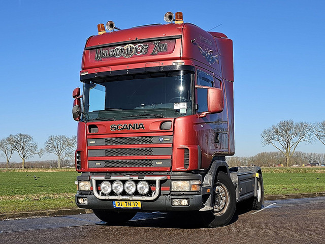 Aantal Assen: 2, Configuratie: 4x2, Laadvermogen: 11560 kg, Eigen gewicht: 7440 kg, Totaalgewicht: 19000 kg, Diesel inhoud totaal: 600 liter, Schotelhoogte: 117 cm, Schotel type: Fixed, Vering type: luchtvering, Soort cabine: Topline, Cruise control, Tachograaf, Airconditioning, Aantal airbags: 1, Elektrische ramen, Elektrische spiegels, Kleur: Rood, Metallic, Verwarmde spiegels, Soort lampen: Halogeen, Stoelverwarming, Zwaailichten, Motorvermogen: 250 Kw (335 Hp), Brandstof: diesel, Euro: 3, Soort versnellingsbak: Opti-cruise, Merk versnellingsbak: Scania, Versnellingen: 12, Koppelingspedaal, Extra remsysteem, Merk retarder: Scania, Stuurbekrachtiging, ABS (Anti Blokkeer Systeem), Start accu, Centrale vergrendeling, Zitplaatsen: 2, Stoelopstelling: 1+1, Stoelbekleding: stof, Stoel verstelling: Handmatig