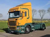 Aantal Assen: 2, Configuratie: 4x2, Eigen gewicht: 7516 kg, Totaalgewicht: 19124 kg, Diesel inhoud totaal: 1225 liter, 2e dieseltank, Schotelhoogte: 122 cm, Schotel type: Fixed, Aantal sperren: 1, Vering type: luchtvering, Soort cabine: Highline, Cruise control, Tachograaf, Digitale tachograaf, Airconditioning, Standkachel, Elektrische ramen, Elektrische spiegels, Radio/cassette, GPS navigatie, Kleur: Meerkleurig, Verwarmde spiegels, Soort lampen: Halogeen, Climatecontrol, Stoelverwarming, Bluetooth, Motorvermogen: 353 Kw (473 Hp), Brandstof: diesel, Euro: 5, Soort versnellingsbak: Handgeschakeld, Merk versnellingsbak: Scania, Versnellingen: 12, Koppelingspedaal, Extra remsysteem, Merk retarder: Scania, Stuurbekrachtiging, ABS (Anti Blokkeer Systeem), ASR (Anti Slip Regeling), PTO, Start accu, Centrale vergrendeling, Stoelopstelling: 1+1, Stoelbekleding: leder, Stoel verstelling: Handmatig
