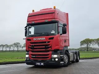 Aantal Assen: 3, Configuratie: 6x2, Diesel inhoud totaal: 860 liter, 2e dieseltank, Schotelhoogte: 120 cm, Schotel type: Slide, Aantal sperren: 1, Vering type: luchtvering, Soort cabine: Topline, Cruise control, Tachograaf, Digitale tachograaf, Airconditioning, Aantal airbags: 1, Stand airco, Standkachel, Elektrische ramen, Elektrische spiegels, Radio/cassette, GPS navigatie, Kleur: Rood, Verwarmde spiegels, Soort lampen: Halogeen, Laneassist, Climatecontrol, Stoelverwarming, Bluetooth, Zwaailichten, Motorvermogen: 360 Kw (483 Hp), Brandstof: diesel, Euro: 6, Soort versnellingsbak: Opti-cruise, Merk versnellingsbak: Scania, Versnellingen: 12, Extra remsysteem, Merk retarder: Scania, Stuurbekrachtiging, ABS (Anti Blokkeer Systeem), ASR (Anti Slip Regeling), Start accu, Centrale vergrendeling, Stoelopstelling: 1+1, Stoelbekleding: leder, Stoel verstelling: Handmatig