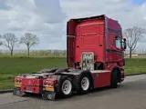 Aantal Assen: 3, Configuratie: 6x2, Eigen gewicht: 9925 kg, Totaalgewicht: 26000 kg, Diesel inhoud totaal: 610 liter, Schotelhoogte: 118 cm, Schotel type: Slide, Aantal sperren: 1, Soort cabine: Topline, Cruise control, Tachograaf, Digitale tachograaf, Airconditioning, Stand airco, Standkachel, Elektrische ramen, Elektrische spiegels, Kleur: Rood, Verwarmde spiegels, Soort lampen: Halogeen, Climatecontrol, Stoelverwarming, Bluetooth, Zwaailichten, Motorvermogen: 368 Kw (493 Hp), Brandstof: diesel, Euro: 5, Soort versnellingsbak: Opti-cruise, Merk versnellingsbak: Scania, Versnellingen: 12, Extra remsysteem, Merk retarder: Scania, Stuurbekrachtiging, ABS (Anti Blokkeer Systeem), ASR (Anti Slip Regeling), Start accu, Centrale vergrendeling, Stoelopstelling: 1+1, Stoelbekleding: leder, Stoel verstelling: Handmatig