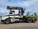Volvo NH12.460 6x4, Full steel suspension, max.100 ton terrain weight, 32 ton tandem, hub reduction, VT2514-14 speed manual gearbox, LOGLIFT 25 ton crane from 2007, RT3210HV rear axle with 3.61 ratio, Jost 5th wheel.