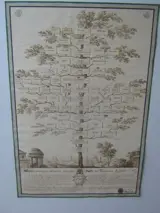 Stamboom van de nobele Sati-familie van Terranova Bracciolini in de provincie Arezzo uit de 19e eeuw.