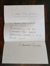 His poem I know the placein manuscript, signed. Together with his visiting card and the original 16 x 11,5 cm envelope, dated 25 april 1994. Very rare. Bidding starts at 250. No bids from Asia.