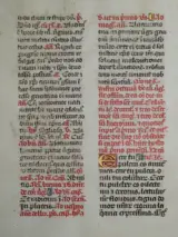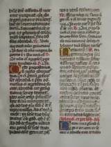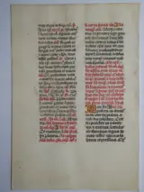 Dit 15e eeuwse manuscript blad komt uit een Latijns Brevier dat geschreven is in Tours, Frankrijk. De tekst is geschreven in 2 verschillende kleuren en kolommen.