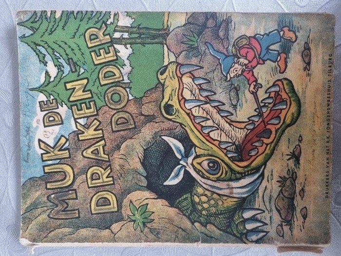 Boek Muk en de drakendoder. Schrijver Frans Fransen. Vierde druk. Boek uit 1950.