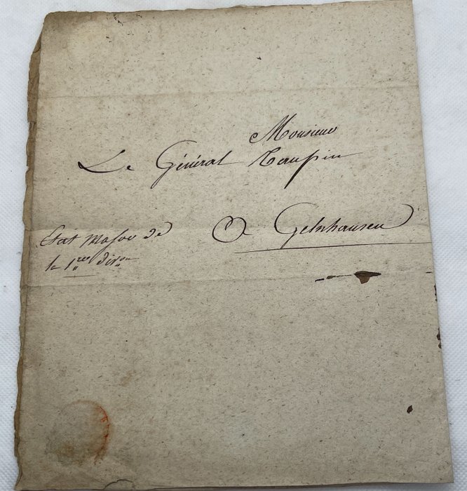 Dit is een vintage exemplaar gecertificeerd door een "De Lestrées" en verzonden naar generaal Taupin, d.w.z. Eloi Charlemagne Taupin (1767-1814). Het document geeft richtlijnen voor de komende dagen.