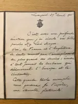 De brief bedankt de burgemeester voor het welkom in de stad en erkent de gezamenlijke inspanningen van Frankrijk en Engeland in de Eerste Wereldoorlog.