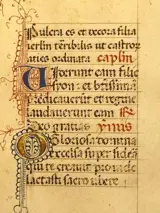 Mit zwei Initialen in Blattgold en in Farben und Federwerk!