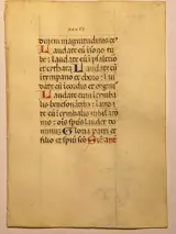 Wir bieten Ihnen ein Originales Blatt und Lateinische Handschrift aus einem mittelalterlichen Stundenbuch an. Die Handschrift wurde in schwarz-brauner, blauer und roter Tinte auf Pergament verfasst. Gotischer Schrifttyp Vorder- und Rückseitig mit juwelen 12 Zeilen.