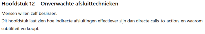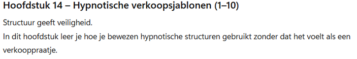 Alles wat je hier leest, kun je toepassen in sales, coaching, leiderschap, marketing en dagelijkse gesprekken.
