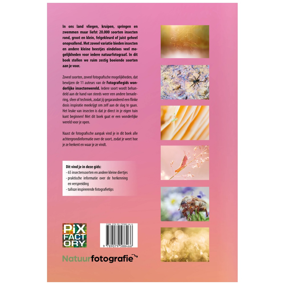 Zoveel soorten, zoveel fotografische mogelijkheden, dat bewijzen de 11 auteurs van de Fotografiegids wonderlijke insectenwereld. Iedere soort wordt behandeld aan de hand van steeds weer een andere benadering, sfeer of techniek, zodat jij gegarandeerd een flinke dosis inspiratie meekrijgt om zelf aan de slag te gaan. Het leuke van insecten is dat je direct in je eigen tuin kunt beginnen! Met dit boek gaat er een wonderlijke wereld voor je open.