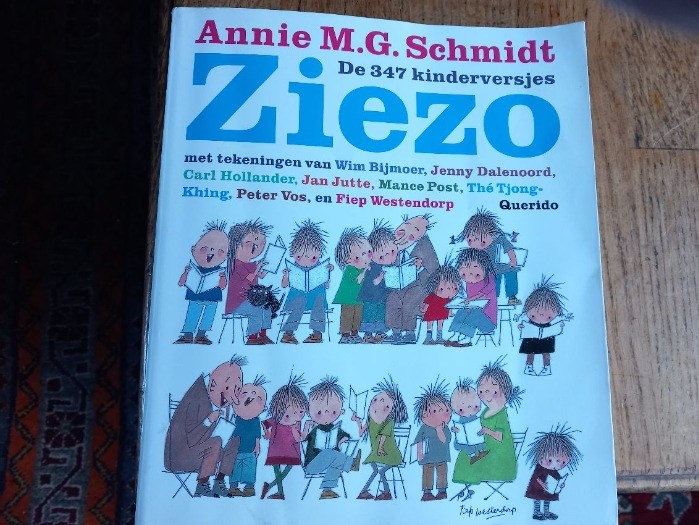 - Driehonderdzevenenveertig kinderversjes bevat 'Ziezo', de inventaris van een rijk-geïnspireerd leven. Al bladerend in de royale uitgave blijkt hoezeer de versjes van Annie M.G. Schmidt gemeengoed, nee beter nog, cultuurgoed zijn geworden. Behalve de inhoud van de versjesbundels die tussen 1950 en 1960 verschenen, bevat het boek ook versjes uit de t.v.-serie 'Ja zuster nee zuster', uit de schoolboekjesserie 'Waaidorp' plus nog eens dertig versjes die niet eerder in boekvorm verschenen. Velen zullen de gedichtjes associëren met de tekeningen van Fiep Westendorp. Het is dan ook wel boeiend om haar manier van illustreren te vergelijken met die van Wim Bijmoer, Jenny Dalenoord, Carl Hollander, Jan Jutte, Mance Post, The Tjong Khing en Peter Vos van wie ook tekeningen in 'Ziezo' zijn opgenomen.