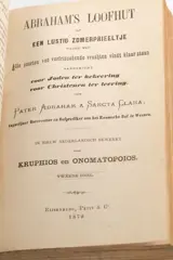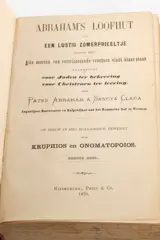 Abraham's Loofhut of een lustig Zomerprieeltje waarin men alle Soorten van verfrisschende Vruchten vindt klaar staan aangericht voor Joden ter Bekeering voor Christen ter Leerling. Opnieuw in het Hollandsch bew. door Kruphios en Onomatopoios.