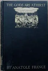 'The Gods Are Athirst (French: Les dieux ont soif, also translated as The Gods Are Thirsty or The Gods Will Have Blood) is a 1912 novel by Anatole France. It is set in Paris in 1793–1794, closely tied to specific events of the French Revolution (...) The novel includes a wide variety of sexual relationships. In chapter XXI France depicts a brief failed attempt at a same-sex liaison. Julie has been wearing men's clothing to avoid being recognized. A middle-aged man has often smiled at her, expressing what she thought was "discreet sympathy" for her plight. One day when it begins to rain he invites her to share his umbrella. Startled by her voice when she accepts, he runs away, leaving her rainsoaked. "She suddenly understood, and despite her worries could not prevent herself from smiling." '