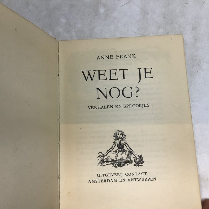 "Weet je Nog? Verhalen en Sprookjes" door Anne Frank - Uitgeverij Contact, Amsterdam - 1949 eerste Nederlandse druk - 15cmx13cm - conditie: zeer goed, in originele band met lichte slijtage aan randen, compleet met alle illustraties