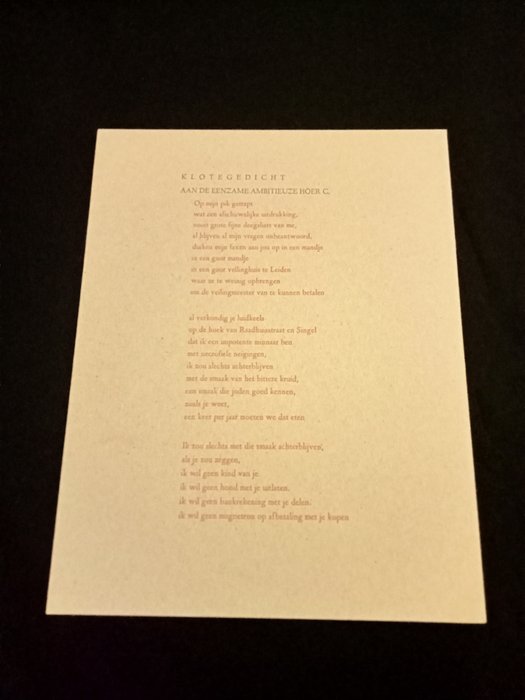Arnon Grunberg – Klotegedicht aan de eenzame ambitieuze Hoer C. – New York, Kunst Editions, 1998 – 1e en enige druk.