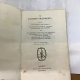 "The Ancient Fragments; met wat er overblijft van de geschriften van Sanchoniatho, Berossus, Abydenus, Megasthenes en Manetho, ook de hermetische geloofsbelijdenis, The Old Chronicle; The Laterculus of Erasthenes, The Tyrian Annals, The Oracles of Zoroaster, and the periplus of Hanno" door L.P. Cory Esq - William Pickering, London - 1828 first UK edition - 18cmx15cm - conditie: goed, gebonden in linnen band, met wat slijtage en wrijving aan platten en rug, wat roestvlekjes op pagina's.