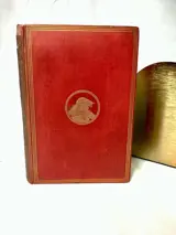 Conditie: Originele hardcover rood linnen band, prachtige goud vergulde voering rond de randen, centraal ontwerp en titellettertype. Rug is versleten met licht wrijven op de hoeken van de planken. Bovenste gedeelte rug ontbreekt, verder zeer goed, vooral van binnen. Ongerepte zwarte schutbladen, één