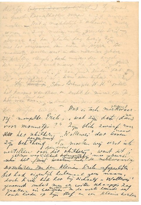 Godfried Bomans. Twee blocnote-velletjes met aan beide zijden handschrift "Erik of het klein insectenboek". Het gaat hier om een probeersel, in het boek staat een andere tekst. Een gedeelte van het manuscript is geschreven in potlood. Van de eerste handschriftpagina heeft het bovenste gedeelte de kaft gehaald van de boekuitgave "Schrijven is schrappen".